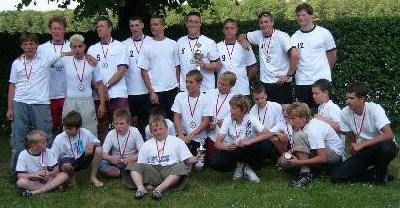 Das ist ein Teil unserer Mannschaften. Die Herren oben im Bild wurden 2005 deutscher Vizemeister. Die Schüler, zu denen auch wir gehören, haben in diesem Jahr die Berliner Meisterschaft gewonnen, sind Ostdeutscher Meister geworden und haben den Sachsencup geholt.