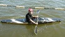 So sieht man auf dem Wasser in voller Montur aus. Zur Ausrüstung gehören Boot, Helm. Schwimmweste, Paddel und Spritzdecke. Die Ausrüstung wird von unserem Verein gestellt. Will man allerdings richtig gutes Material, kauft man es sich.